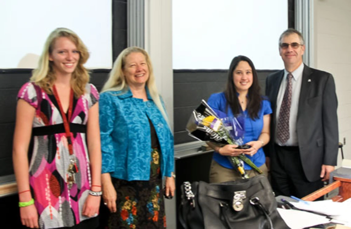 Making the award were Patricia MacCorquodale, dean of the Honors College, Jeff Goldberg, dean of the College of Engineering, and Lizzie Greene, head of the award's student selection committee and a sophomore in systems and industrial engineering.